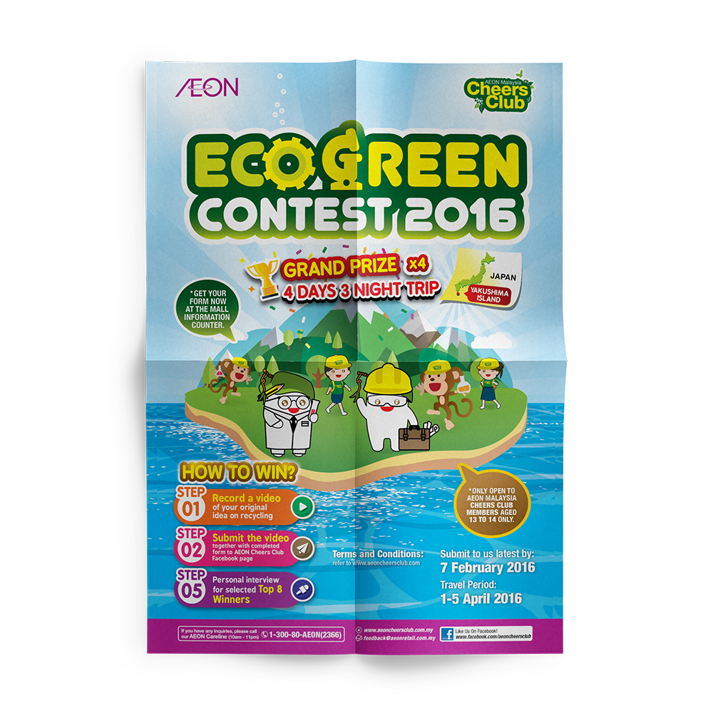 We were entrusted by AEON CSR to develop brand advocating green education mainly among children aged 6 to 14. To catch the eyes of children, we have come up with a lovely character that is simple enough to be remembered. We make things more interesting by designing a set of emotions and actions for the character.